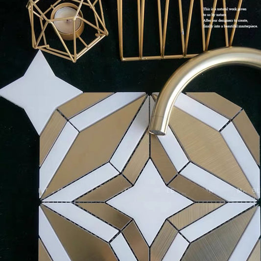 White marble-edged metal mosaic backsplash tiles for bathroom and kitchen FCMST021
