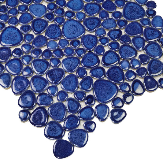 Navy Blue Pebble Porcelain Mosaic Tiles For Pool And Bathroom FCCPT104