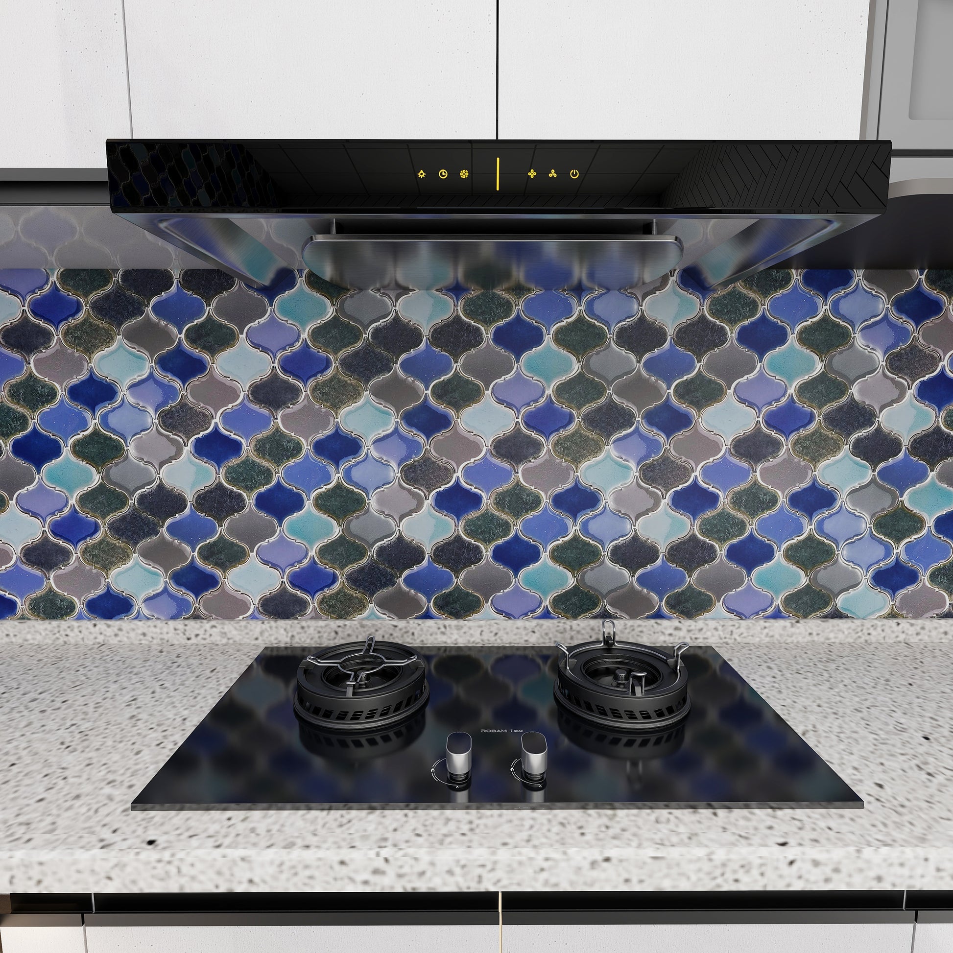 The Multi-colored Arabesque Porcelain Mosaic Backsplash is a beautiful and elegant choice for any kitchen or bathroom renovation project. It provide a modern and sophisticated look that will elevate the overall aesthetic of your space. The porcelain construction of the tiles ensures durability and easy maintenance, making it a practical choice for any busy household. This tile is also versatile and can be paired with a variety of different cabinet and countertop options. Upgrade your space with the timeless elegance of the Multi-colored Arabesque Porcelain Mosaic.