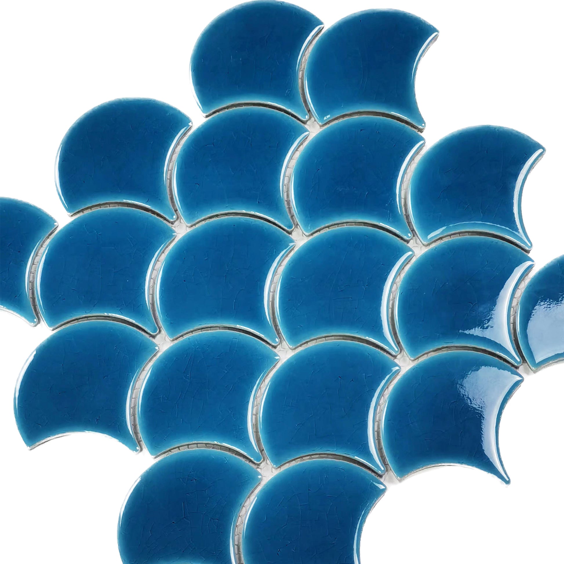 Cobalt Blue Tile Backsplash Fish Scale Crackle Porcelain Mosaic