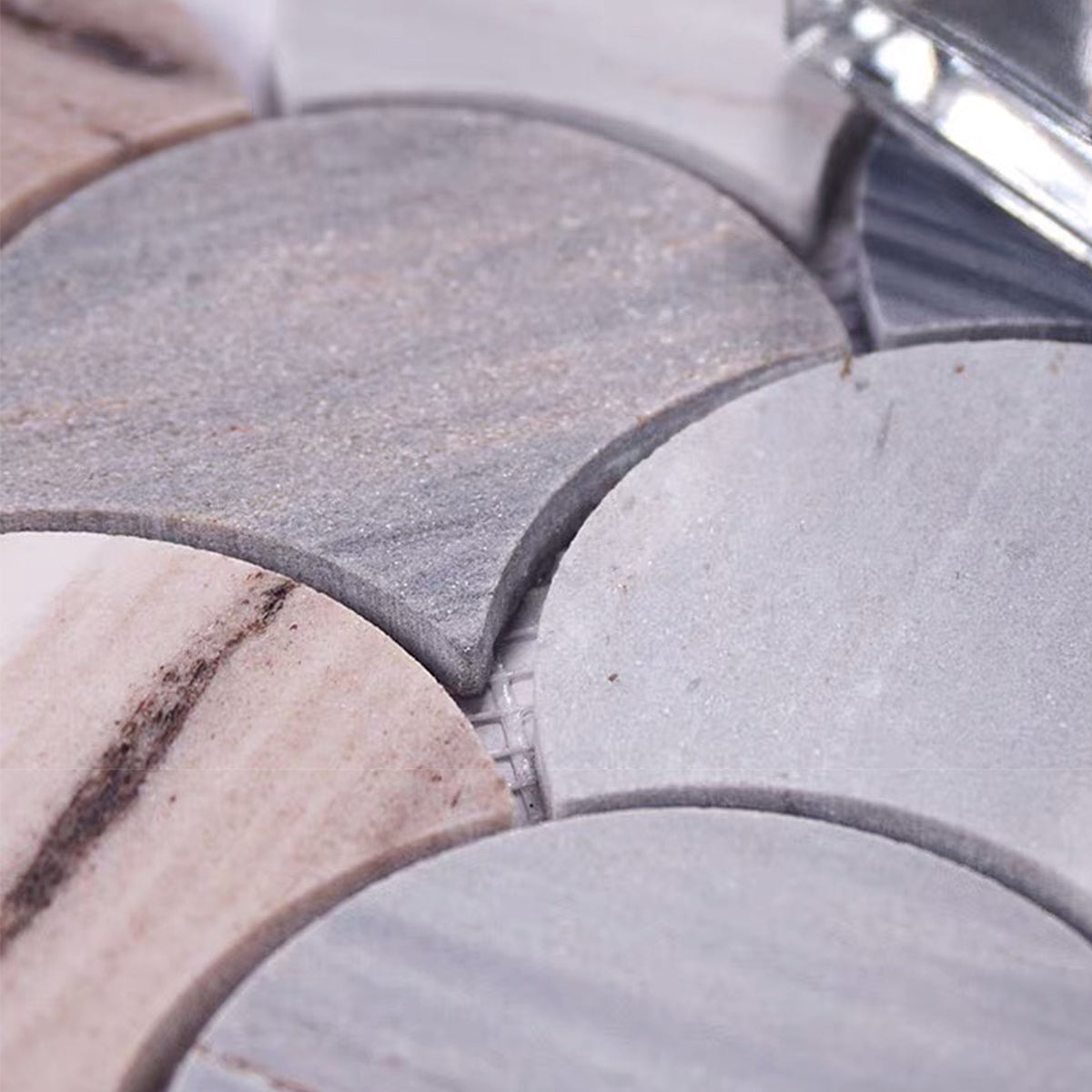 Infuse your bathroom with an air of elegance! Exquisitely crafted, our Blue Slate Gray Fish Scale Marble Mosaic Wall Tiles are the perfect upscale update your sanctuary deserves. These captivating grey fish scale tiles boast a magical blend of durability and beauty, seamlessly merging artistry and practicality. Witness a visual spectacle as the ambient light dances on the unique mosaic pattern creating an immersive aesthetic experience. It's more than just a bathroom update, it's a transformation into a personal retreat. Elevate your morning and evening routines with this marble backsplash masterpiece!