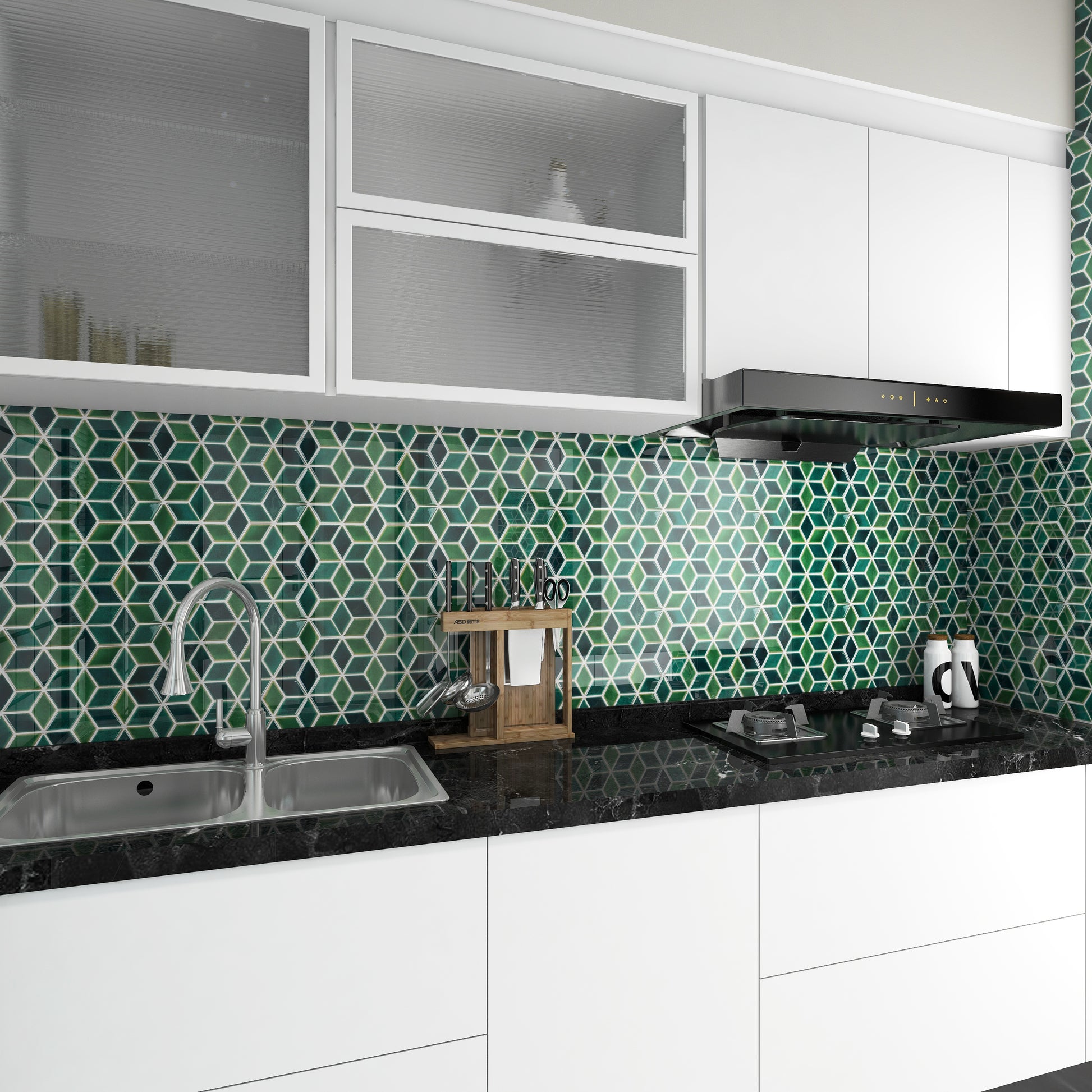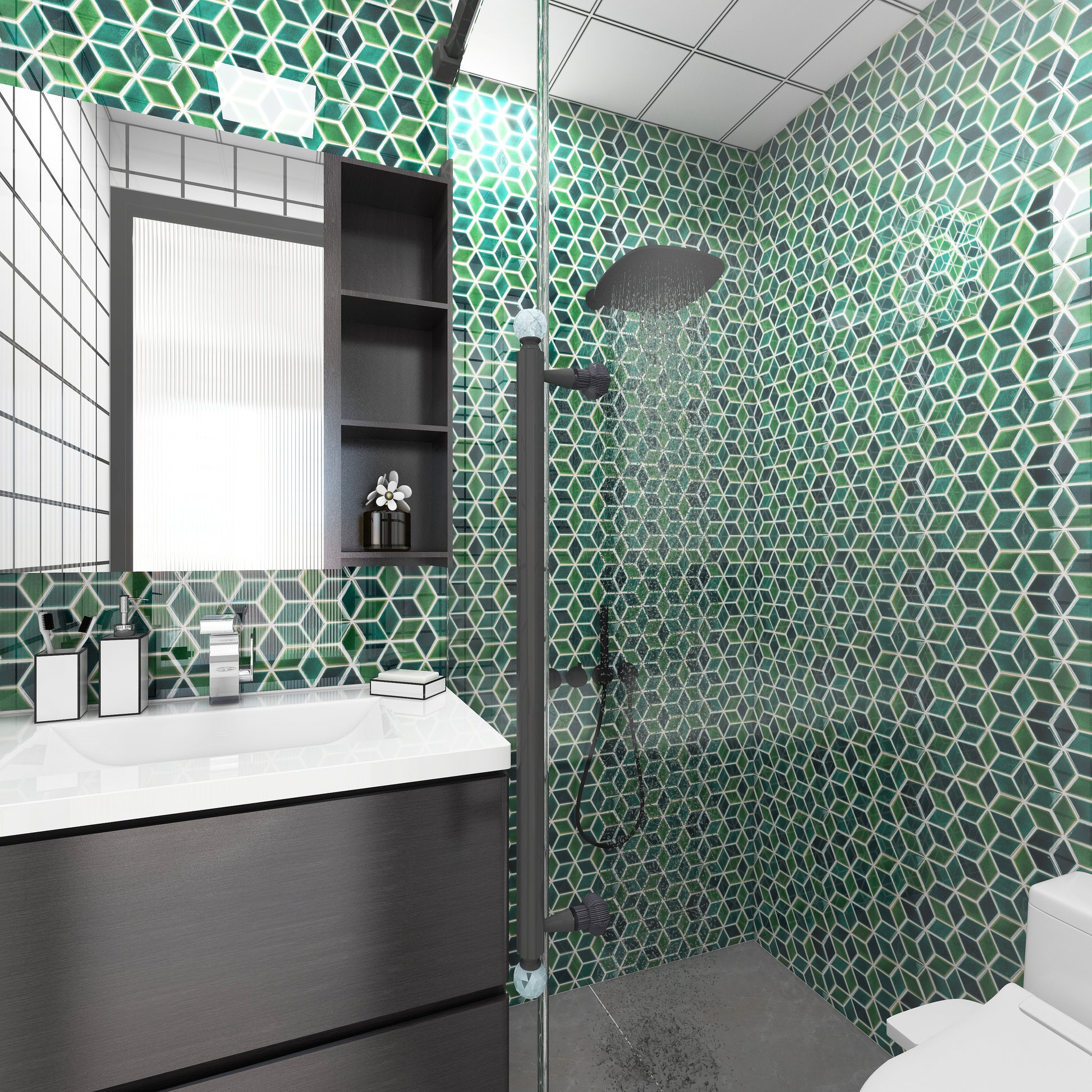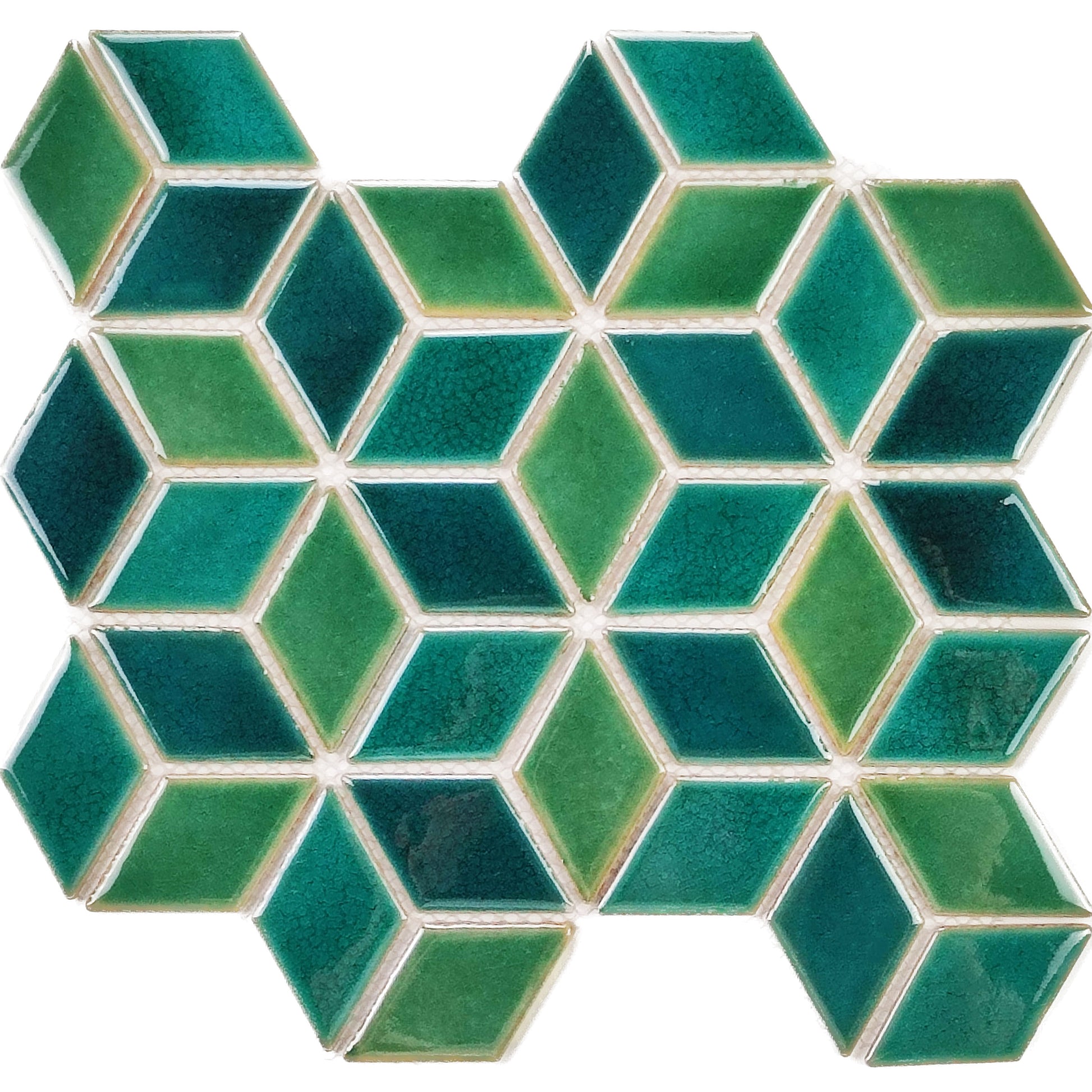 Brighten up your home with our stunning Green Diamond Porcelain Mosaic! It's not just a tile, it's a statement piece that will elevate your home to new design heights. Discover how this beautiful addition can improve your home's functionality and style. Be inspired by the tiles With a fun and vibrant green hue, this tile is perfect for adding a touch of luxury and personalization to your Kitchen and Bathroom!