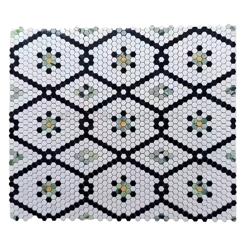 Material: Imported Greek Thassos White Marble, Nero Marquina Marble, Sagano Emerald Green Marble, Amarillo Trian Gold Marble