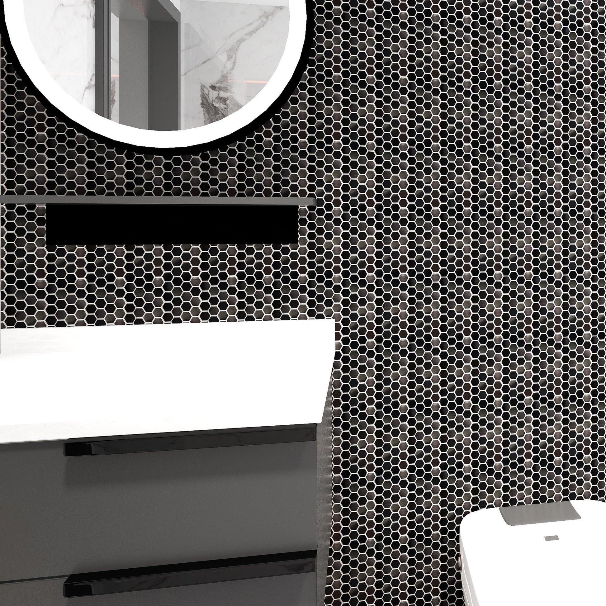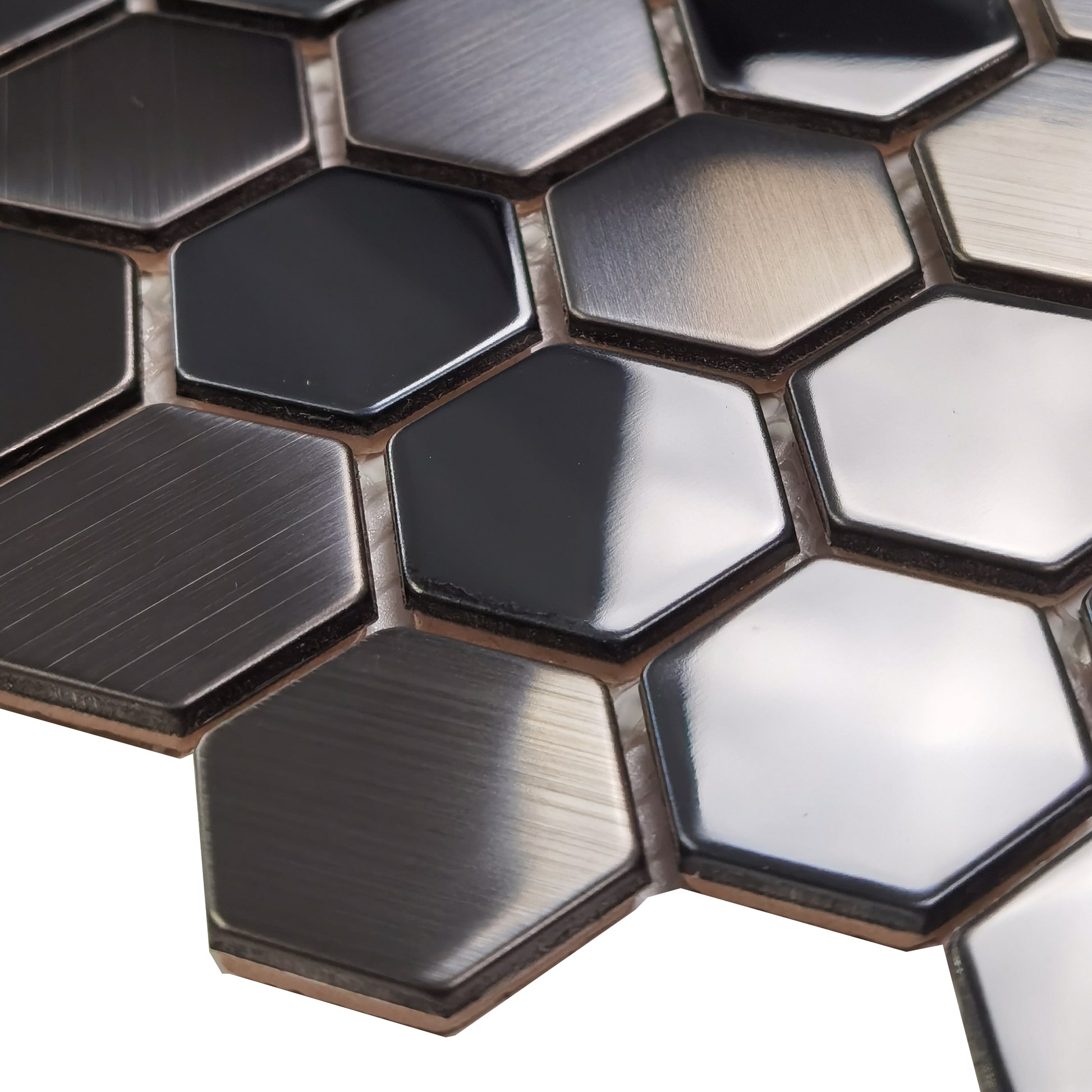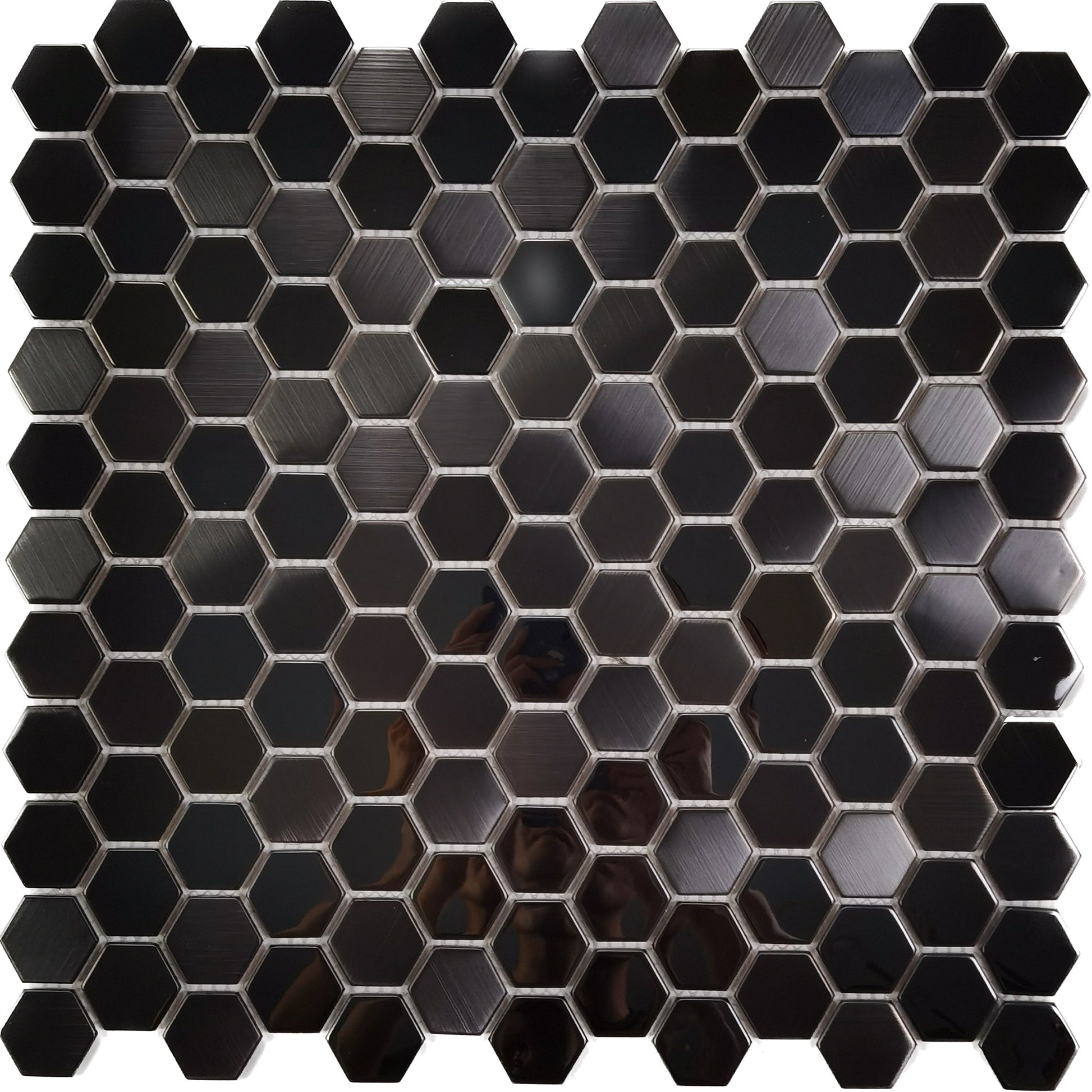 Our Black Metallic Tile Hexagon Stainless Steel Mosaic is a sleek and modern choice for adding a touch of sophistication to your space. The unique hexagon shape and combination of black tiles and stainless steel create a bold and contemporary design that will make your backsplash stand out. The durability of the stainless steel and high-quality materials used in this mosaic make it a perfect choice for a kitchen or bathroom backsplash, and the smooth surface makes it easy to clean. Upgrade your space with the modern elegance of our Black Metallic Tile Hexagon Stainless Steel Mosaic.