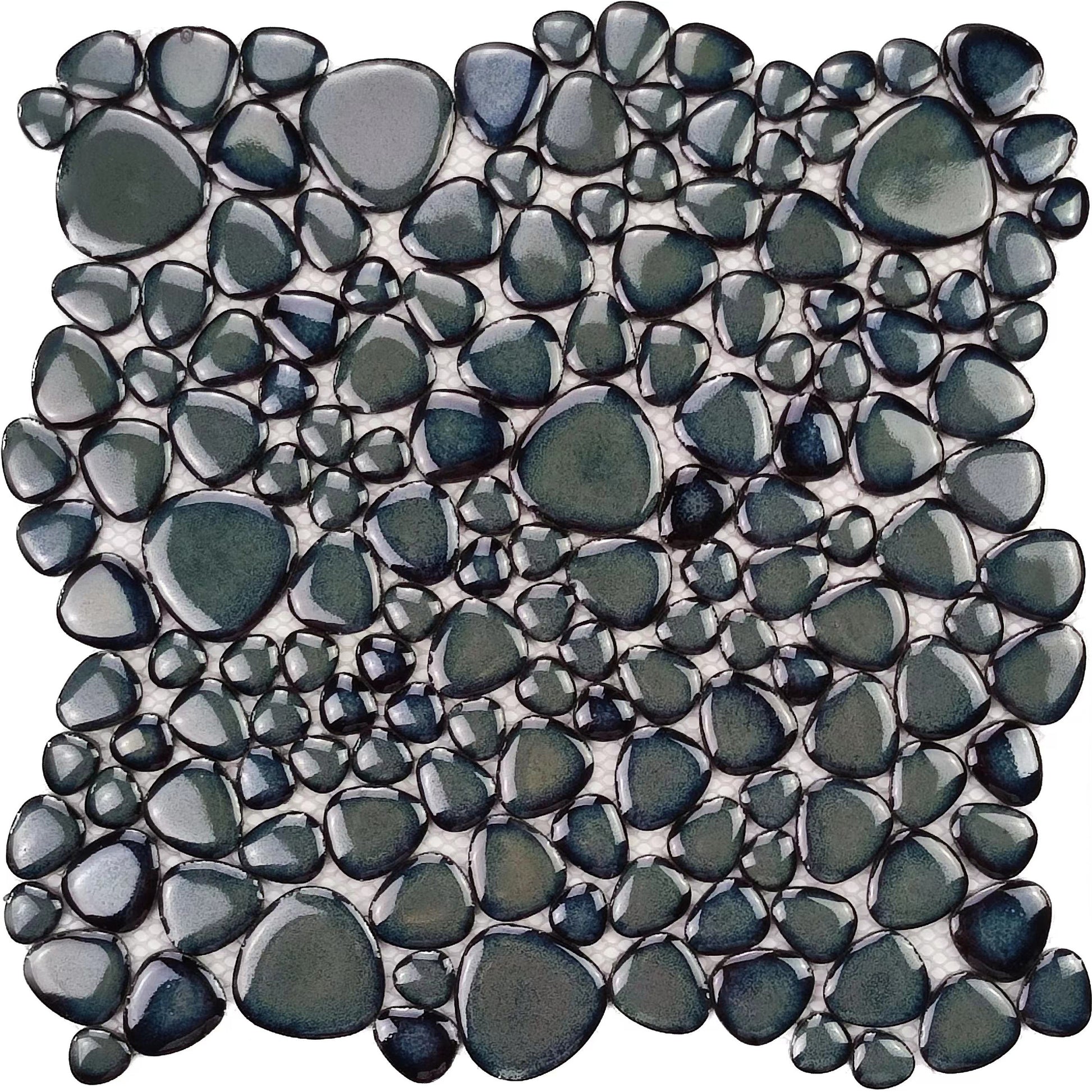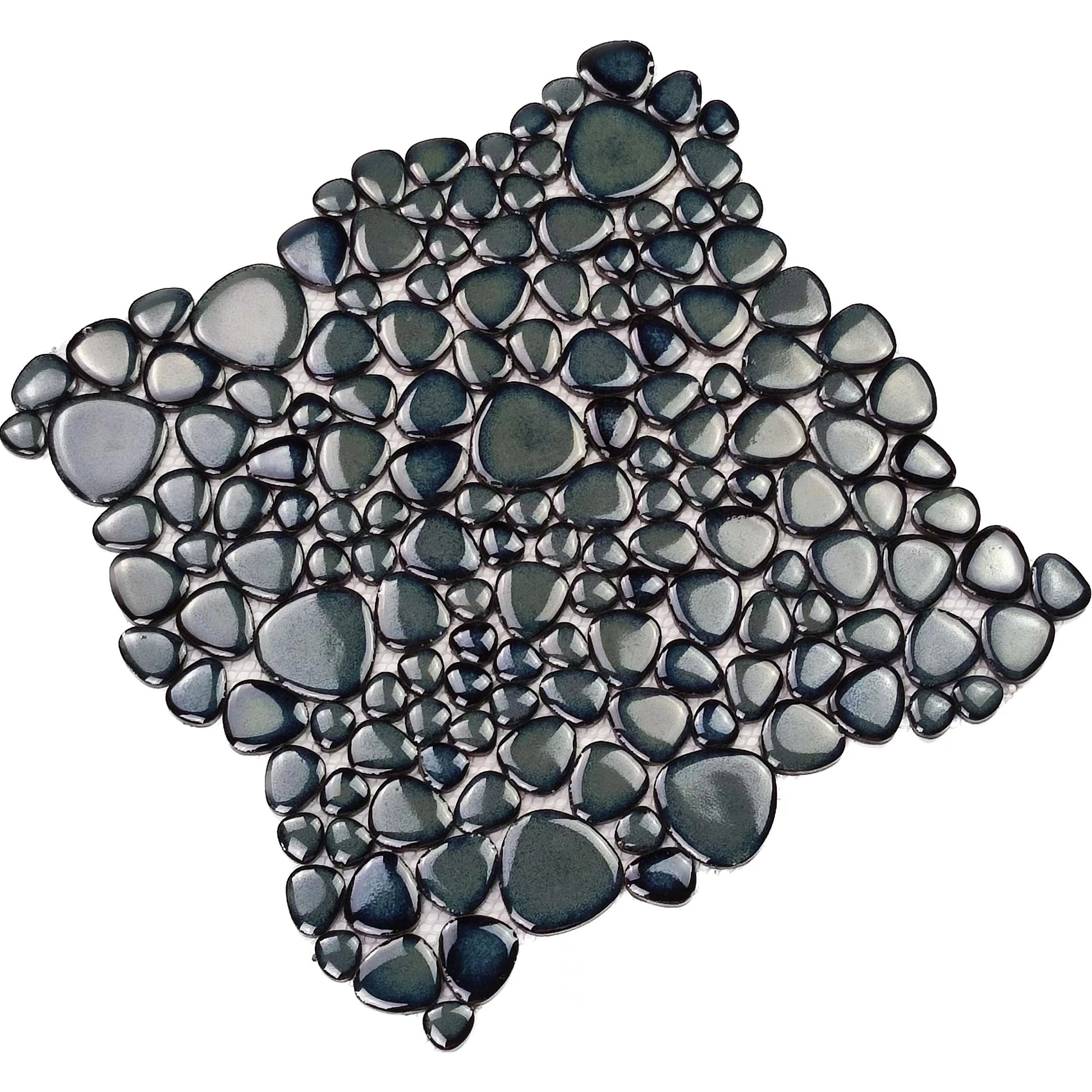 Sq.ft Navy Blue Pebble Porcelain Mosaic Tiles For Pool And Bathroom FCCPT104