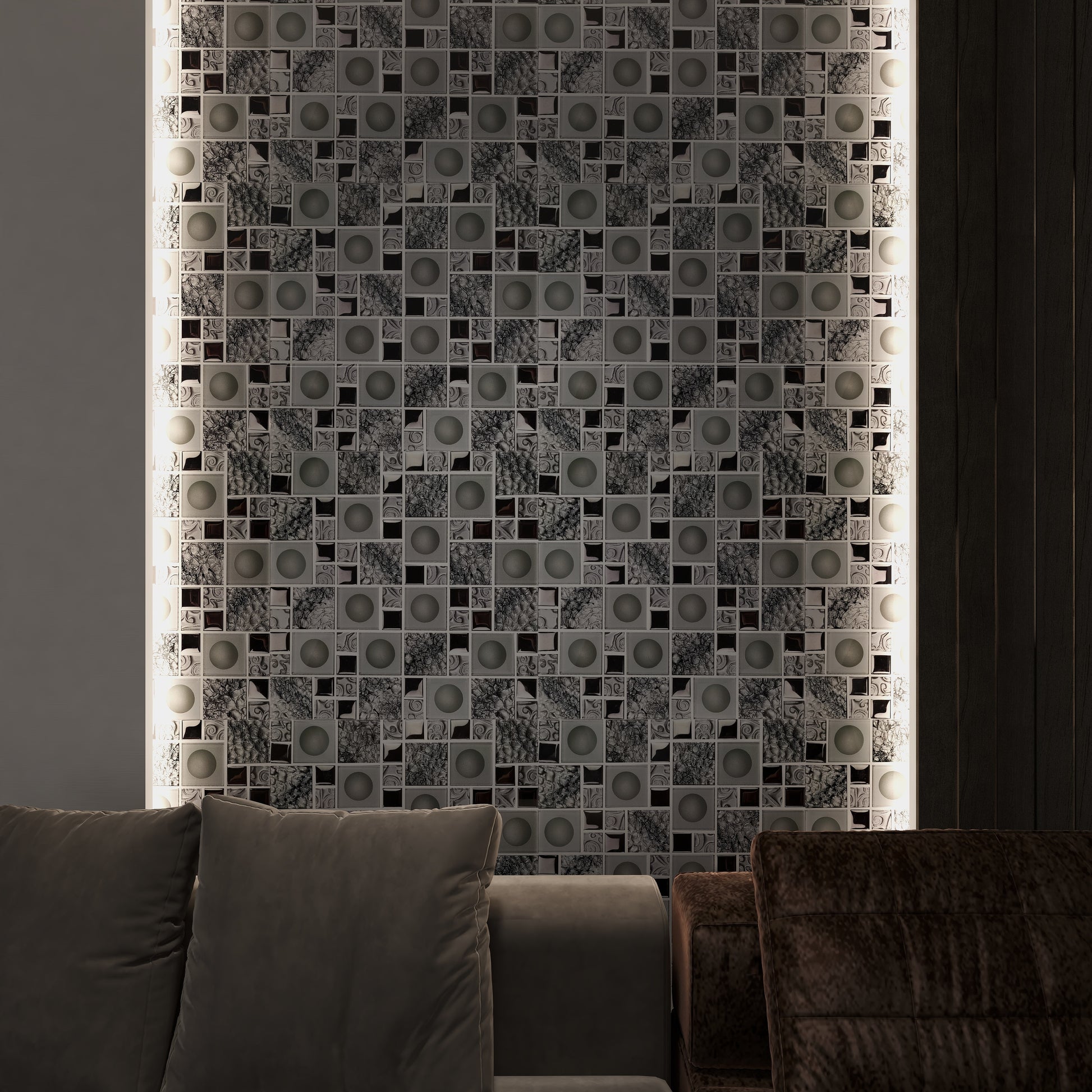 Silver Orb Backsplash Mosaic FCCGT018