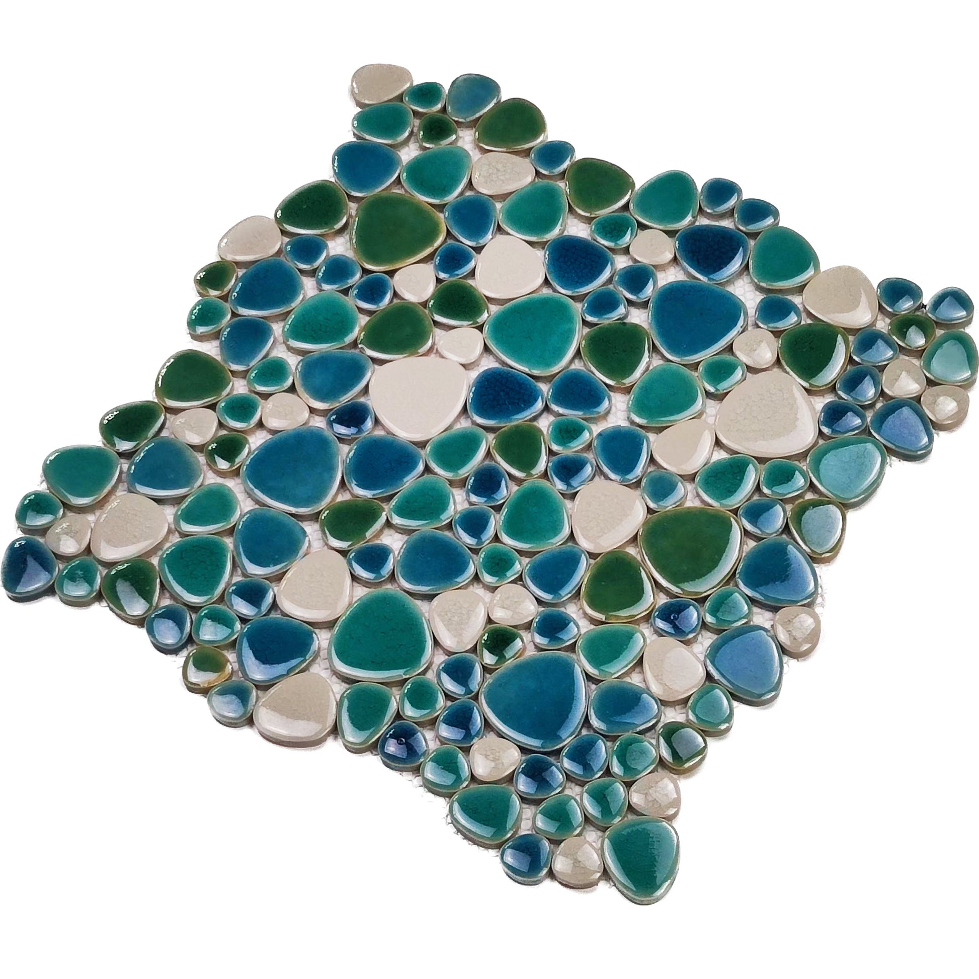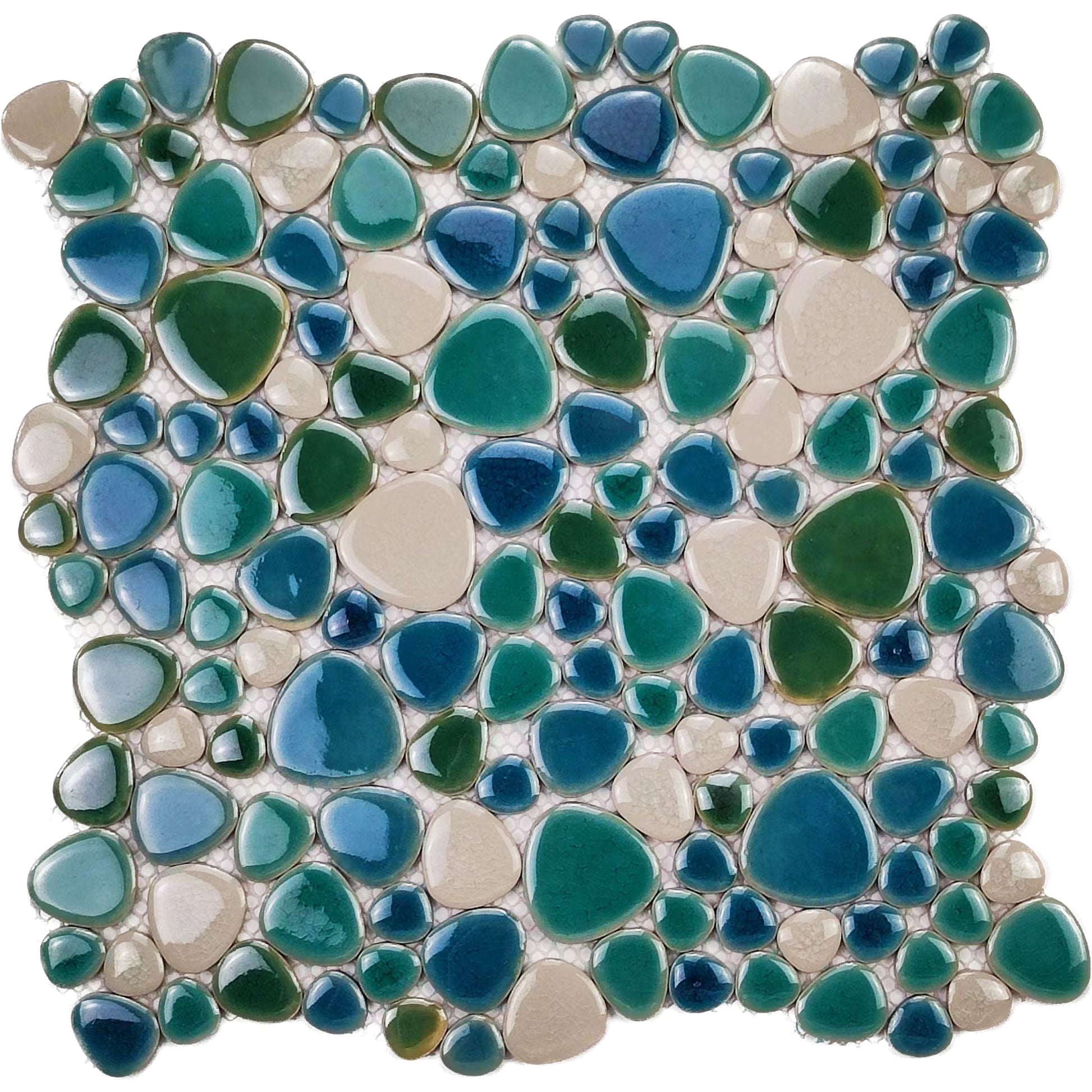 Sq.ft White Green Pebble Mosaic Tile For Bathroom and Pool FCCPT313